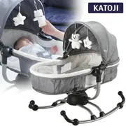 新生児のときから使用することができます。お昼寝のときにはフラットな姿勢になり、ゆりかごのような優しい揺れが心地よい眠りを誘い、腰がすわったら7段階の調節ができるリクライニング機能でお食事のときのチェアとしても活躍できます。月と星のかわいいおもちゃ付きで、取り外しができるところも嬉しいポイントですね。